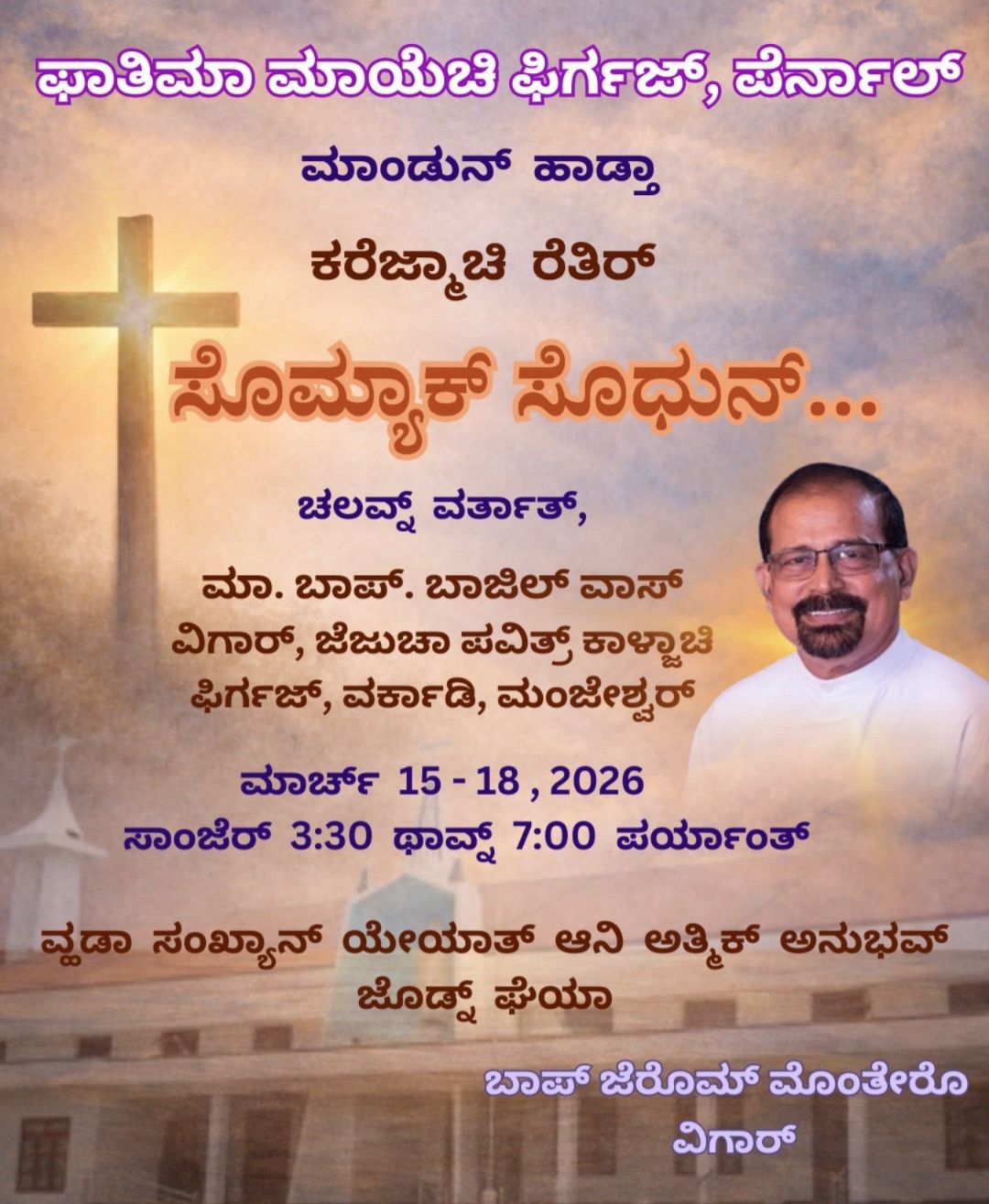 One who learns to carry the Cross of Christ learns to forgive proposed Rev Fr Basil Vaz, Parish Priest, Sacred Heart of Jesus Church, Vorkady, Kasaragod. Forgiveness, chastity and love of the poor and the enemy makes the Church grow in multiple folds from centuries he stressed.