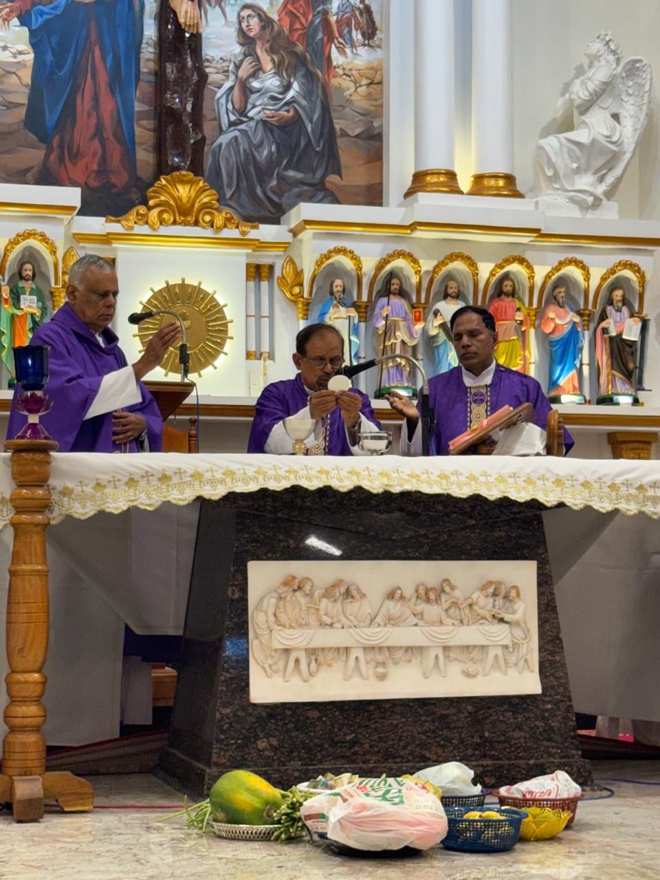 Besides Fr Basil Vaz, Mr Simon Pais, Mr Elias Coelho and Mrs Sylvia Coelho assisted in singing and music.
